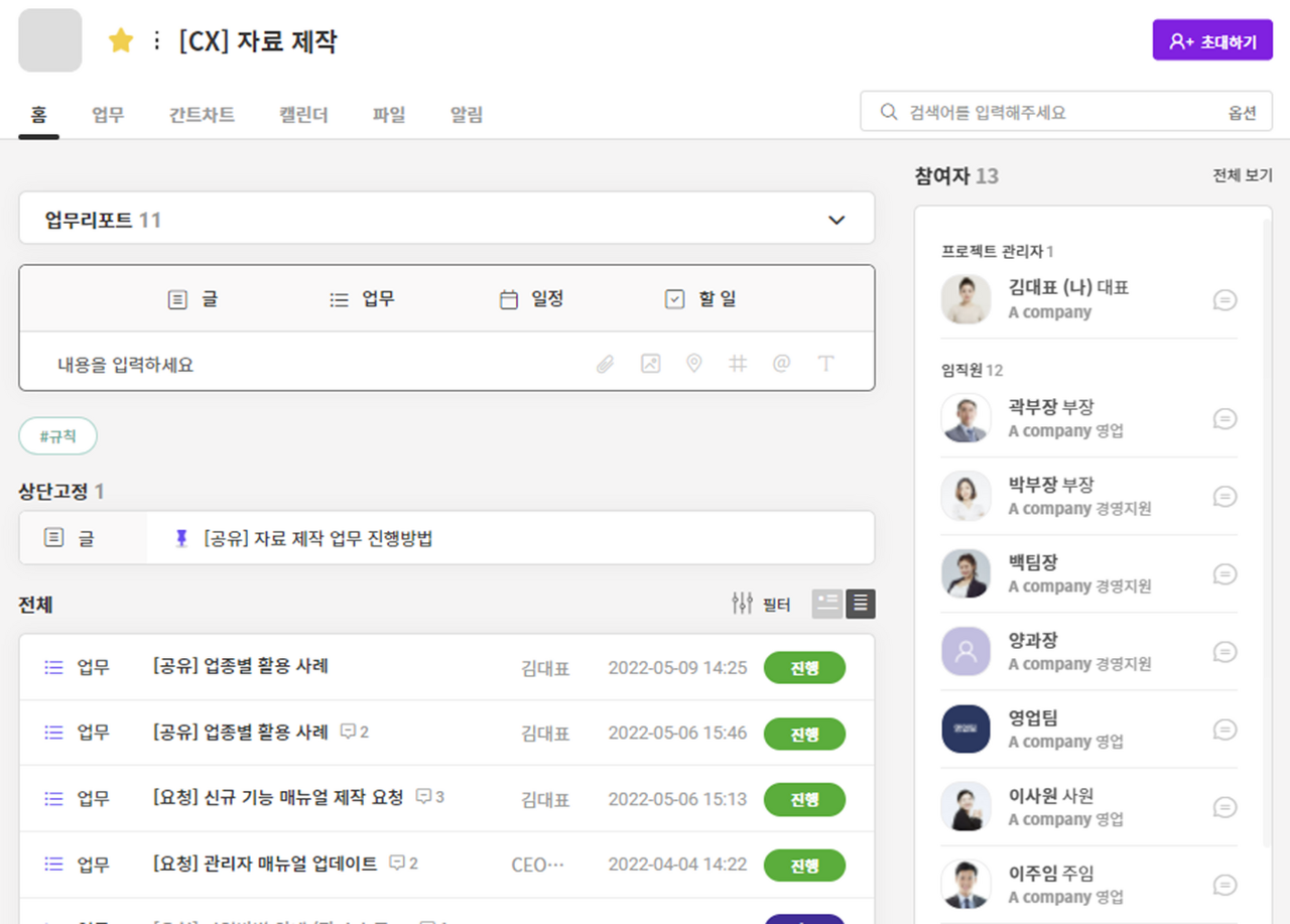 정보를 공유하기 전 우리 회사 직원만 참여된 프로젝트인지 외부인이 함께 참여된 프로젝트인지 확인해주세요 :)