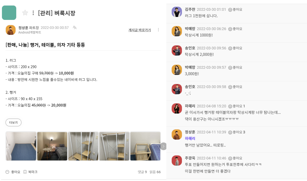 A. 잘쓰는 직원분들이 프로젝트에 업무 등의 게시글을 공유해주시면,