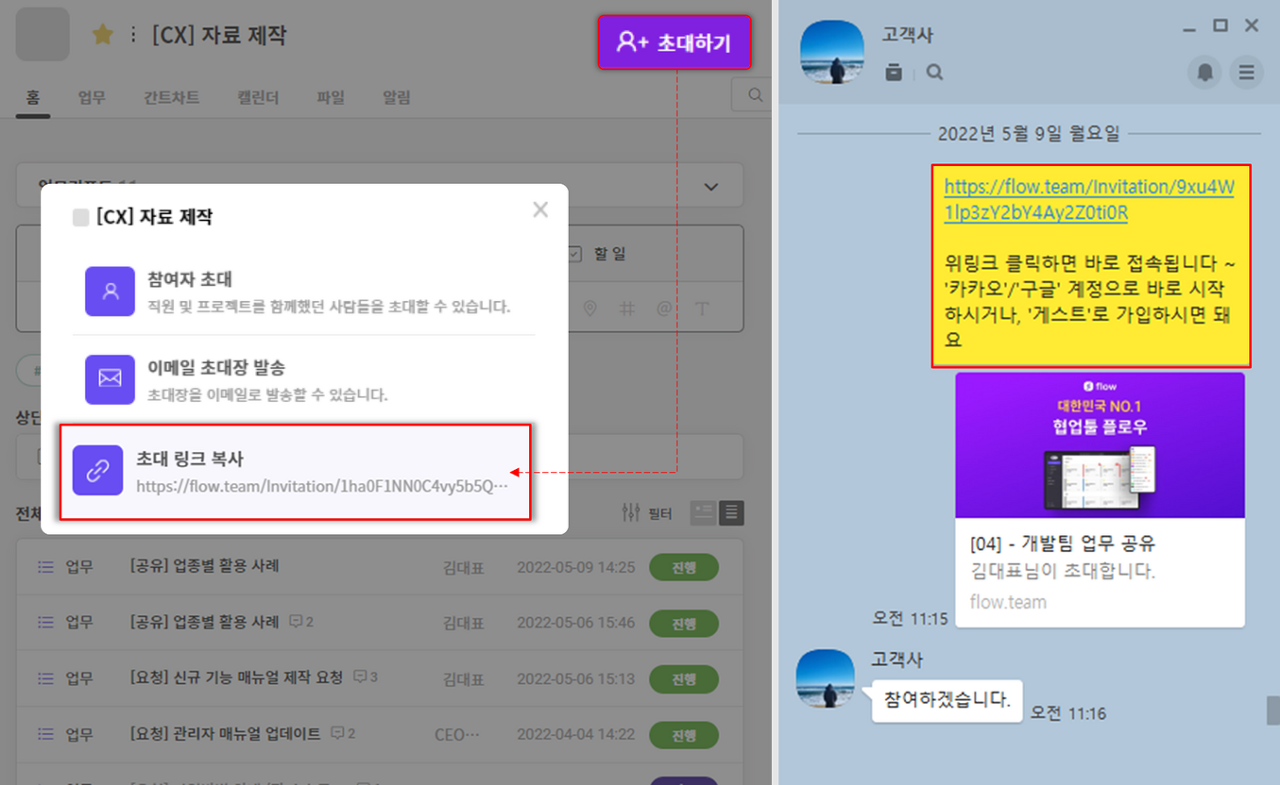 초대 링크 복사와 전달만으로 간단한 고객사 협업 방법, 바로 알려드리겠습니다.